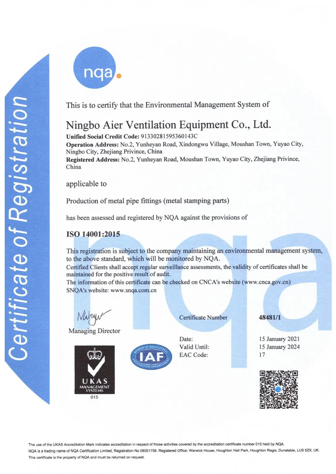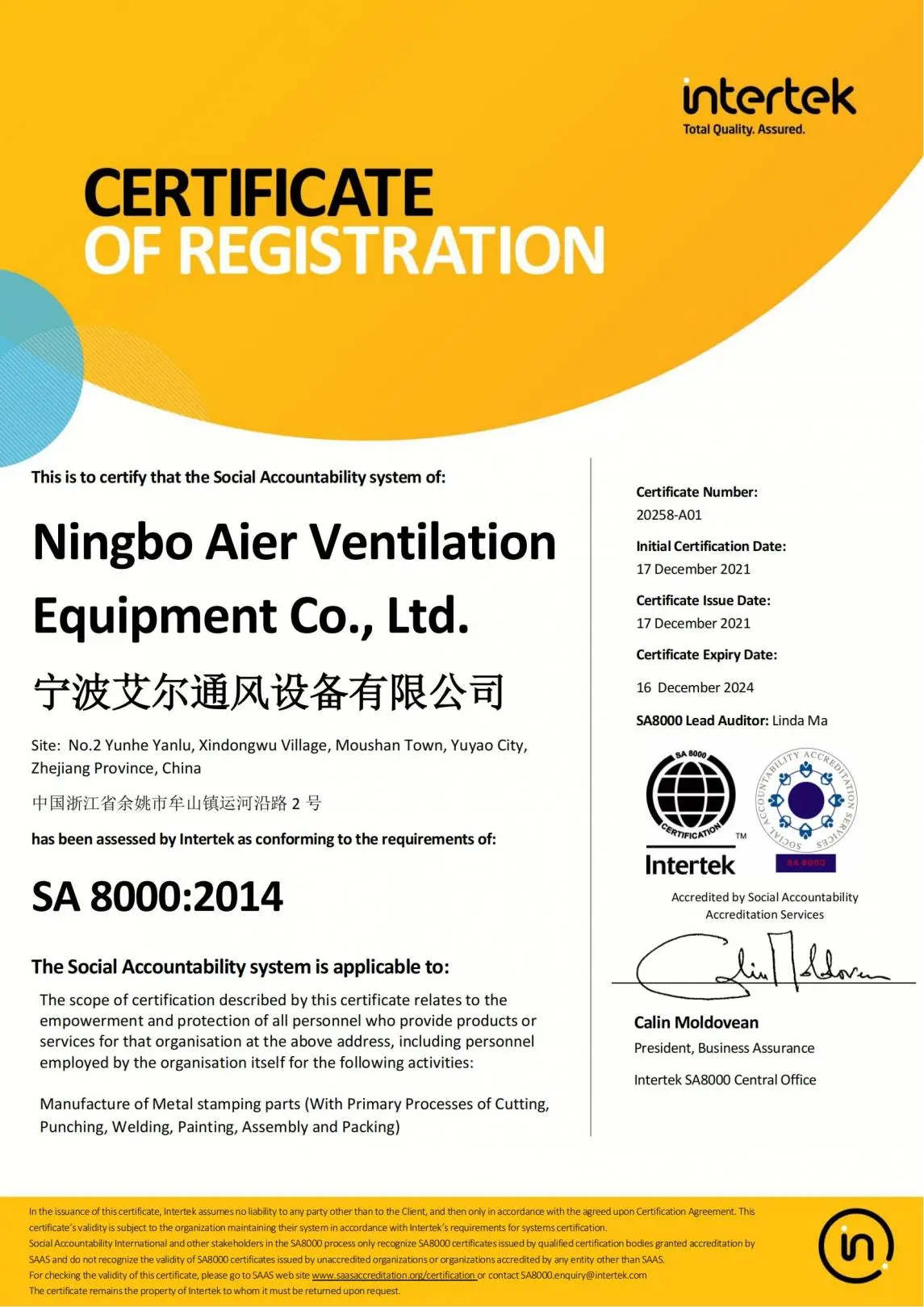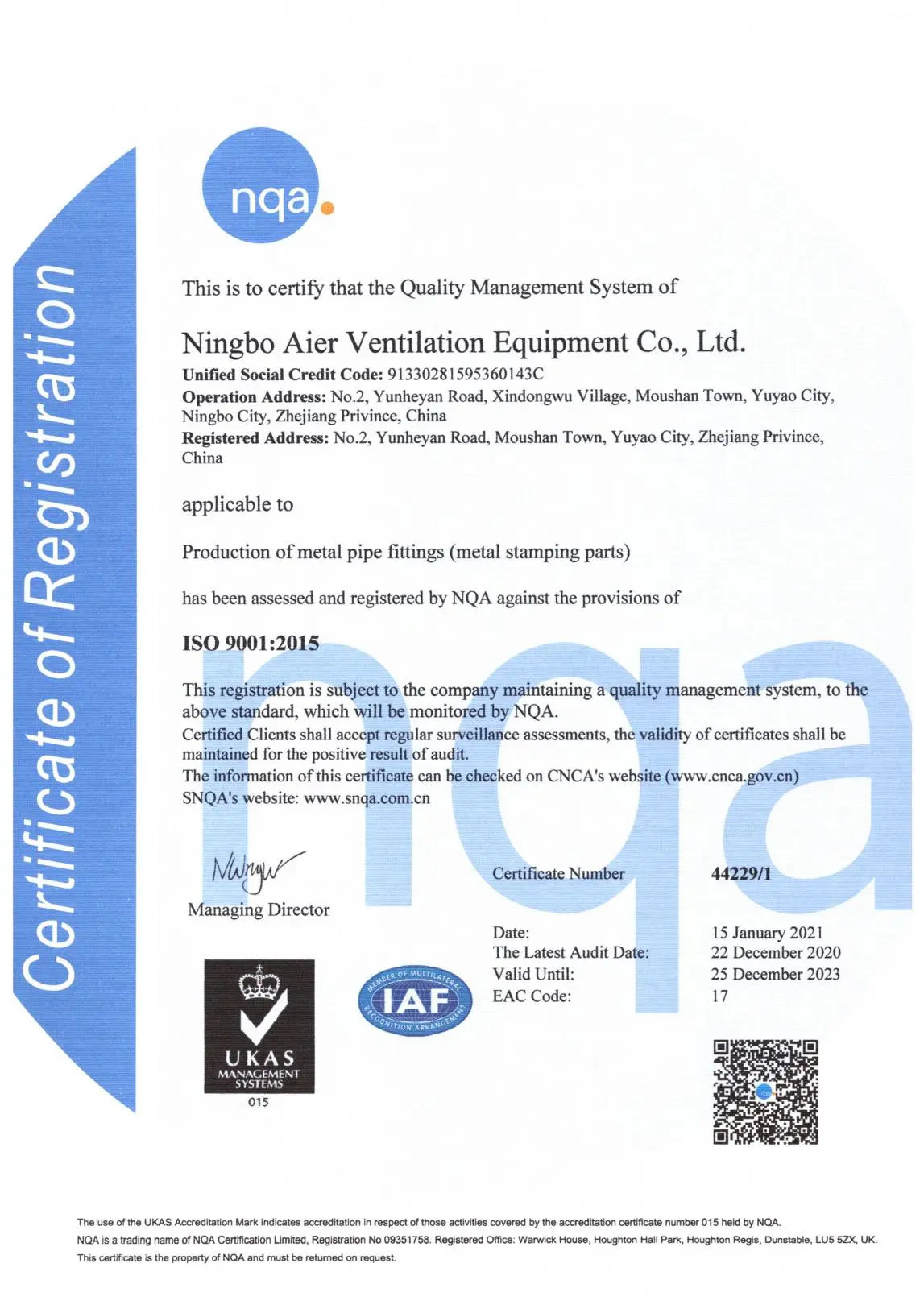 Ningbo Aier Ventilation Equipment Co., Ltd (Yuyao Jingqiao Hardware Factory) ist eine der Manufakturen von Metall präge produkten in China, die 1997 gegründet wurde. Unsere Fabrik umfasst 25.000 Quadratmeter und es befindet sich in Yuyao City, Ostküste von China, sehr geschlossen zu den Häfen von Shanghai und Ningbo.